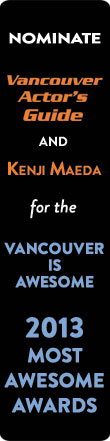 , Soundswrite, Vancouver Acting School, and Shoreline Actor's Lab. Please take the time to learn more about how they contribute to our industry and even send them a quick email to thank them for their support. Lastly, if you could spare 2 minutes, we'd appreciate if you could head on over to the Vancouver Is Awesome 2013 Most Awesome Awards nomination page and nominate us (Vancouver Actor's Guide and Kenji Maeda